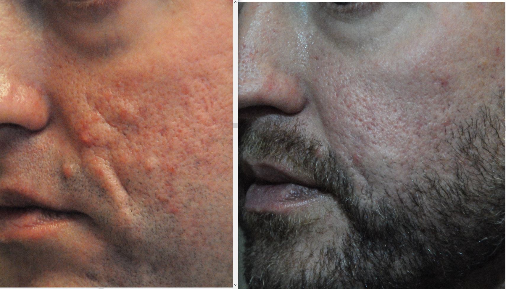 The Acne Scar Vitalizer Technique involves using tissues from your own body along with subcision-like techniques and the use of top of the line lasers together in one treatment. This new technique involves 10-14 steps all done in about 2-3 hours. Most of the patients in our Acne Scar Treatment Before and After Image / Photo Gallery have attained those results with just one treatment.