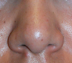 After this is done, your small incisions are closed with very fine sutures. We also usually have a tape and splint to protect your nose for the first 6-7 days. We almost always avoid packing in your nose. We can do this because we have a special way to close the whole area to keep things fitted over the septum and forgo the packing. Also we have a special way to close your incisions so that the nasal skin is fitted on to the underlying structures. These tacking stitches helps your healing much better than traditional approaches that rely on taping the nose for long periods after your Rhinoplasty. Below is an example of a person who underwent Nasal Tip Refinement Rhinoplasty with Dr Young: